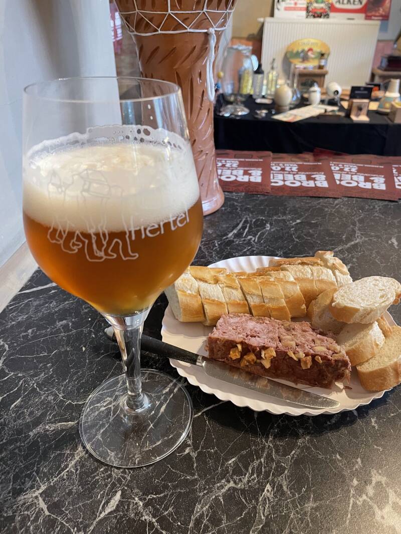 Een hoppig blondje, gearomatiseerd met 'buuntsies neutsies' (uitleg hierover vindt u bij "fiertelommegang") met daarbij het bijhorend glas.